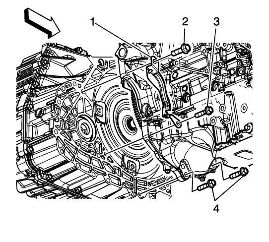 Install the transmission bolts (4) and tighten to 75 Nm (55 lb ft).