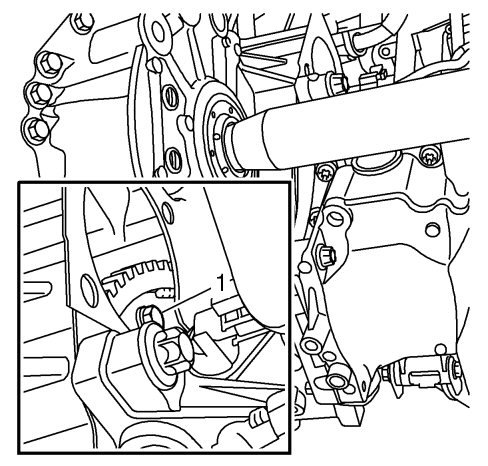 Install the one lower transmission fastener (1) and tighten to 60 Nm (44 lb ft).