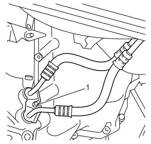 19. Remove the oil cooler hose connection (1) from the transmission.