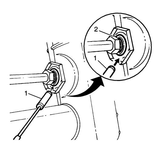 2. Determine whether the transmission oil cooler is steel or aluminum by using a magnet (1) at the cooler flange (2) at the radiator.
