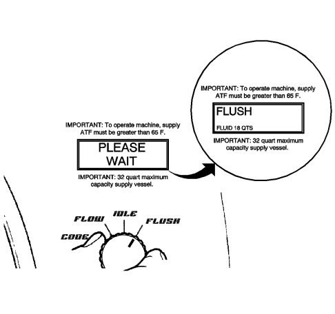 1. From the machine display, identify the temperature of the automatic transmission fluid that is stored in the supply vessel of DT-45096 flush machine.