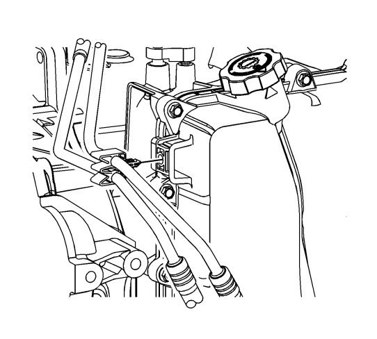 9. Remove the oil cooler inlet and outlet hoses from the retainer on the control valve body cover.