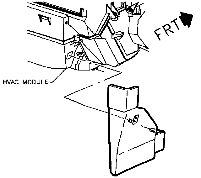 9. Install I/P lower closeout panel by inserting bottom clip into module heater duct and rotating upward to snap in top clip.