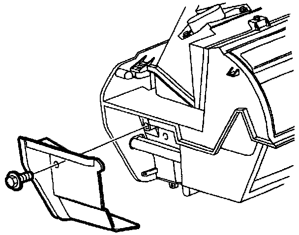 10. Release temperature cable hold down clip from lower heater core cover by carefully lifting up on plastic tab while pushing down on top of cable.