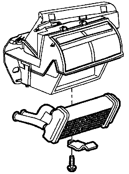 NOTICE: Blow remainder of coolant out of heater core with an air hose to prevent spilling coolant on vehicle interior when removing heater core.