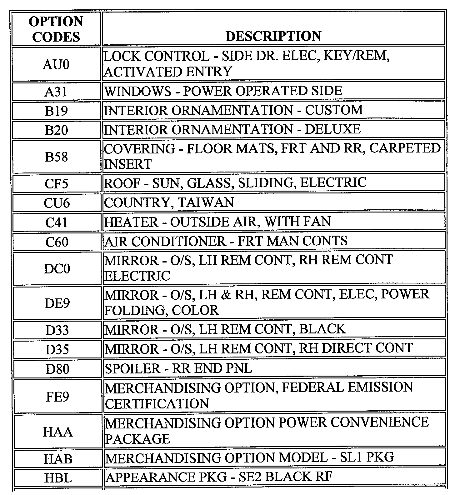 RPO Codes