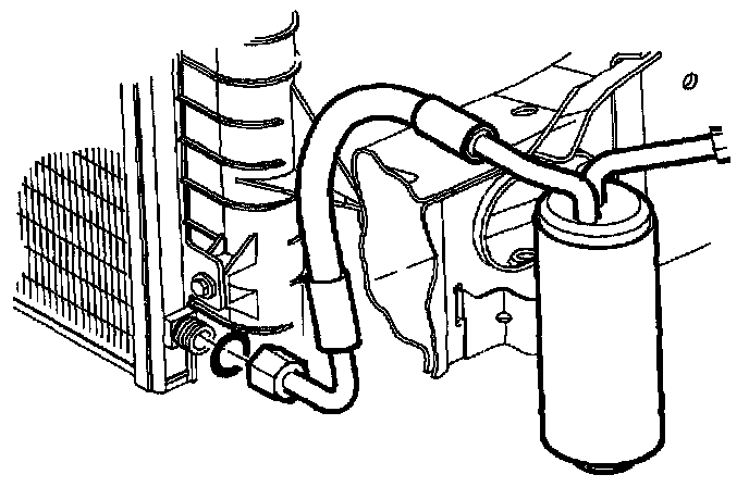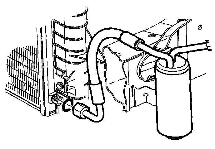 6. Remove receiver-dehydrator hose from condenser outlet.