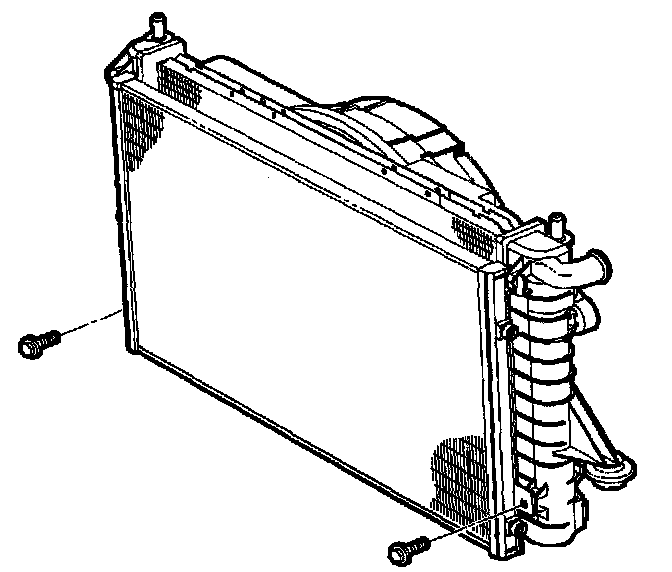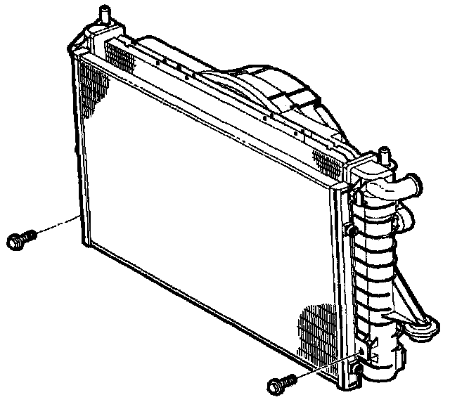 8. Facing the vehicle, pull the condenser back slightly to release it from the mounting pads. Carefully slide condenser straight down.