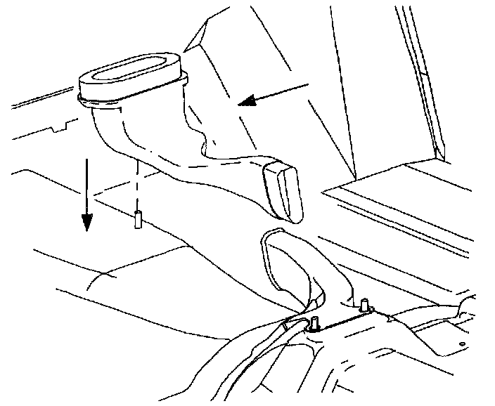 10. For SL and SW only, install rear floor heater duct and place on mounting stud.