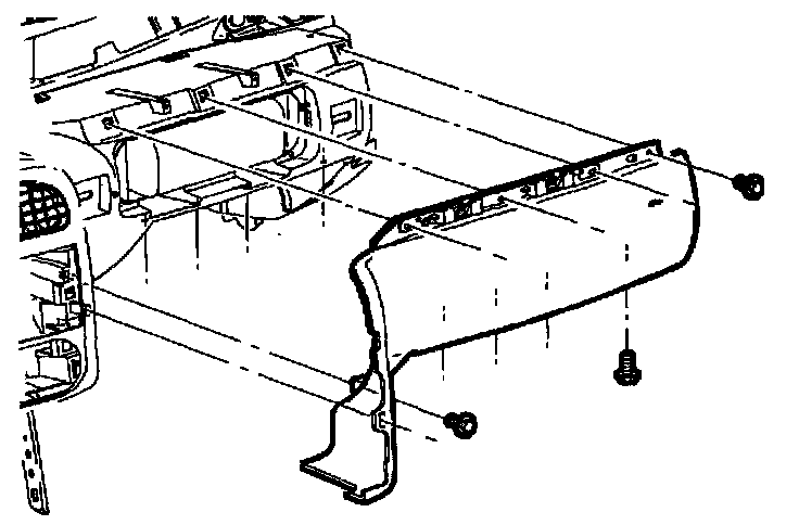 f. Install screws on underside of upper trim panel on passenger's side of vehicle.