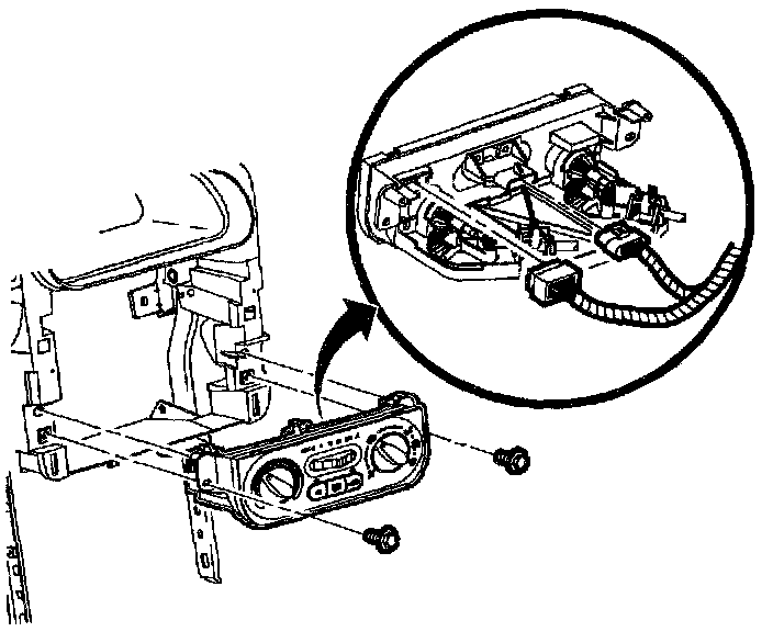a. Pull dimmer/traction control switch harness through I/P cluster bezel opening.