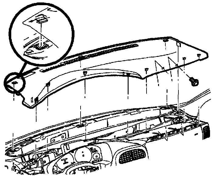 c. Align tabs on sides of upper trim panel with openings in windshield garnish molding.