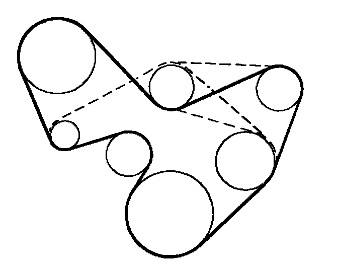 1. Route belt around all pulleys, except front cover idler or A/C compressor pulley.