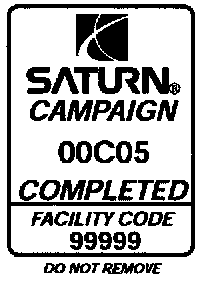 As a reminder, additional labels may be ordered from Saturn publications (1-800-828-2112, prompt 3, Item # S03 00013A for the Campaign Completion Label, and Item # S03 00013B for the Clear Protective Cover).