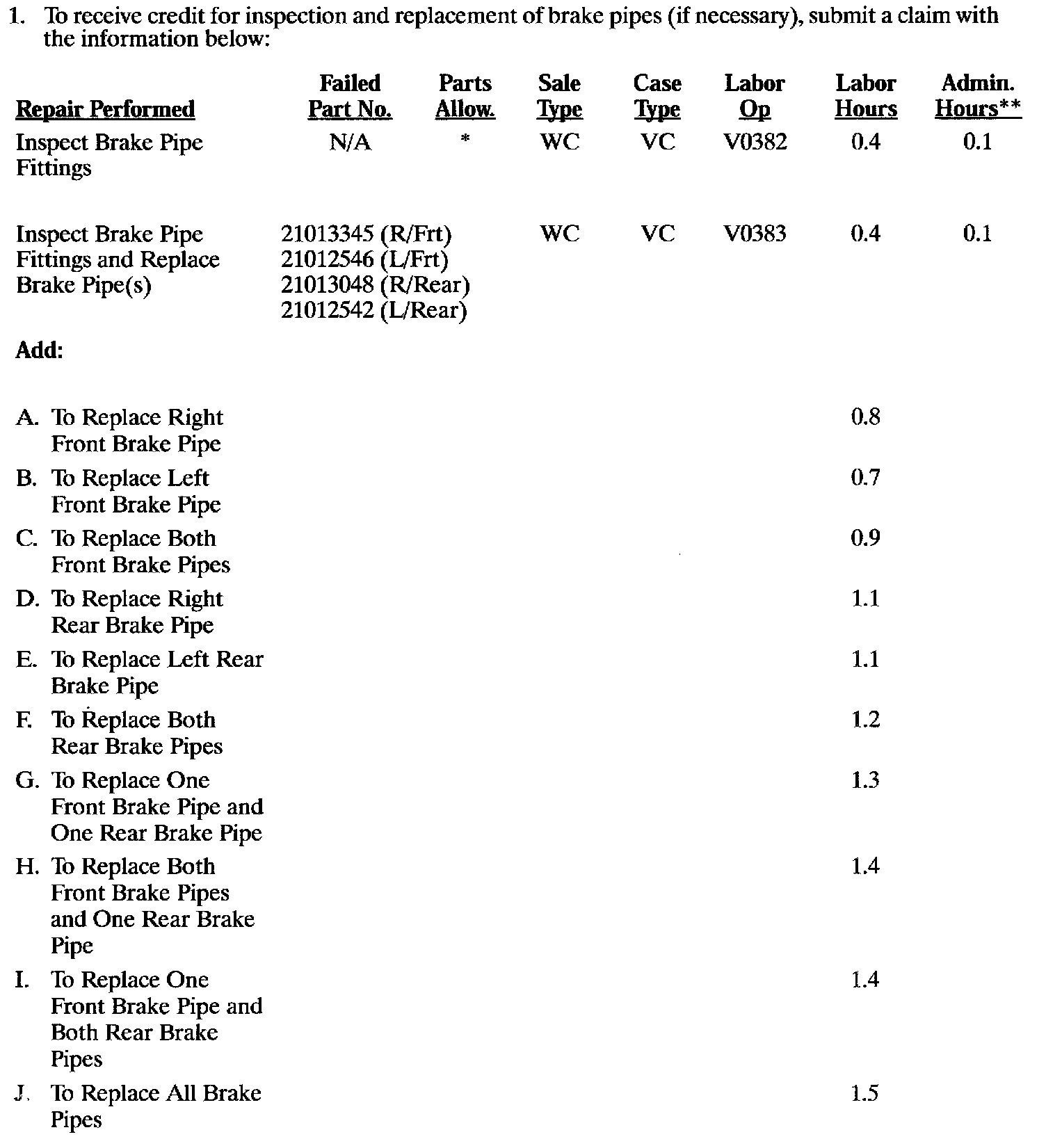 Recall - Brake Pipe Inspection/Replacement: Overview