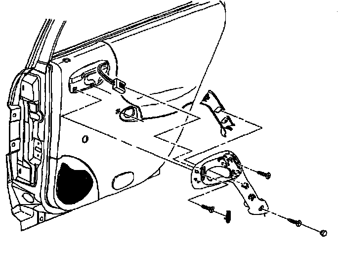 REMOVAL1. Using a small flat blade tool, remove lower fastener plug from inner door handle to expose door handle fastener.