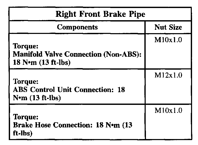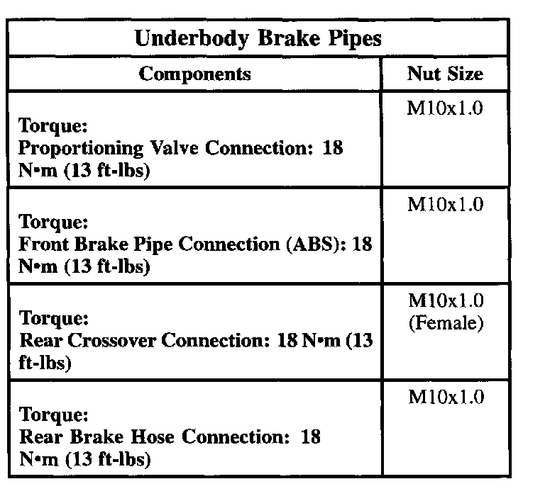 Torque: Brake Pipe Fitting Connection: 18 Nm (13 ft. lbs.)