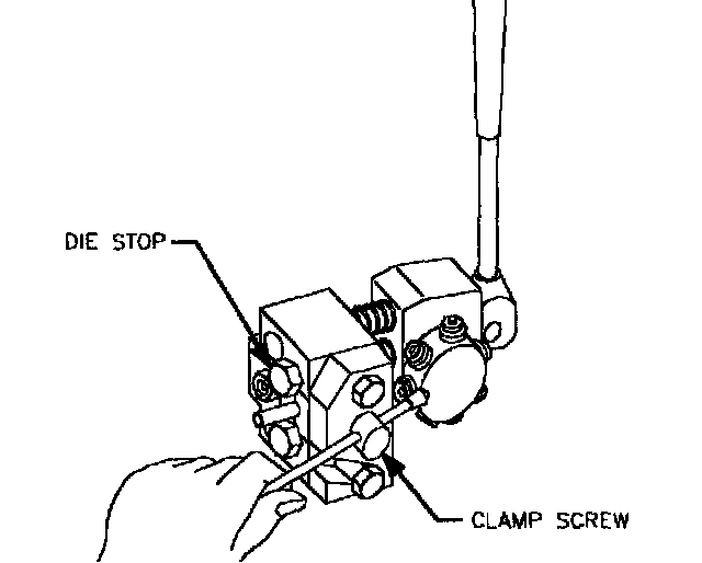 13. Make sure that rear of both halves of the die rest against hexagon die stops. Rotate locking plate to fully closed position and clamp die firmly by tightening clamp screw.