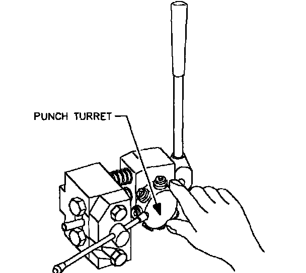 14. Select appropriate Operation 1 (OP. 1) punch by rotating punch turret until correct size (4.75 mm DIN) points towards the open end of pipe to be flared.