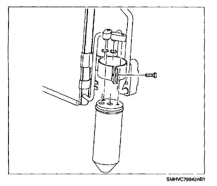 20. Loosen receiver/dehydrator clamp bolt and remove receiver/dehydrator.