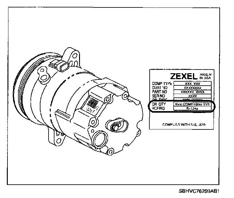 NOTE: PAG oil charge can be identified by locating the label on the rear of A/C compressor. (220 cc oil charge in the total system for the model year serviced.) Improper quantity of oil charge in the system will degrade performance.