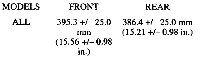 IMPORTANT: When measuring alignment angles, it is critical that the vehicle bumper height be correct. Measure and adjust bumper height according to the following procedure before performing alignment
