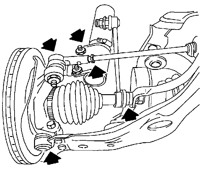 4. Check lower control arms for worn ball studs, worn bushings, or bent arms.
