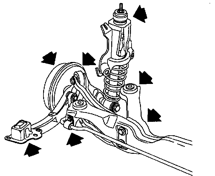 9. Check strut assemblies for oil leaks, looseness, wear, binding or dents.