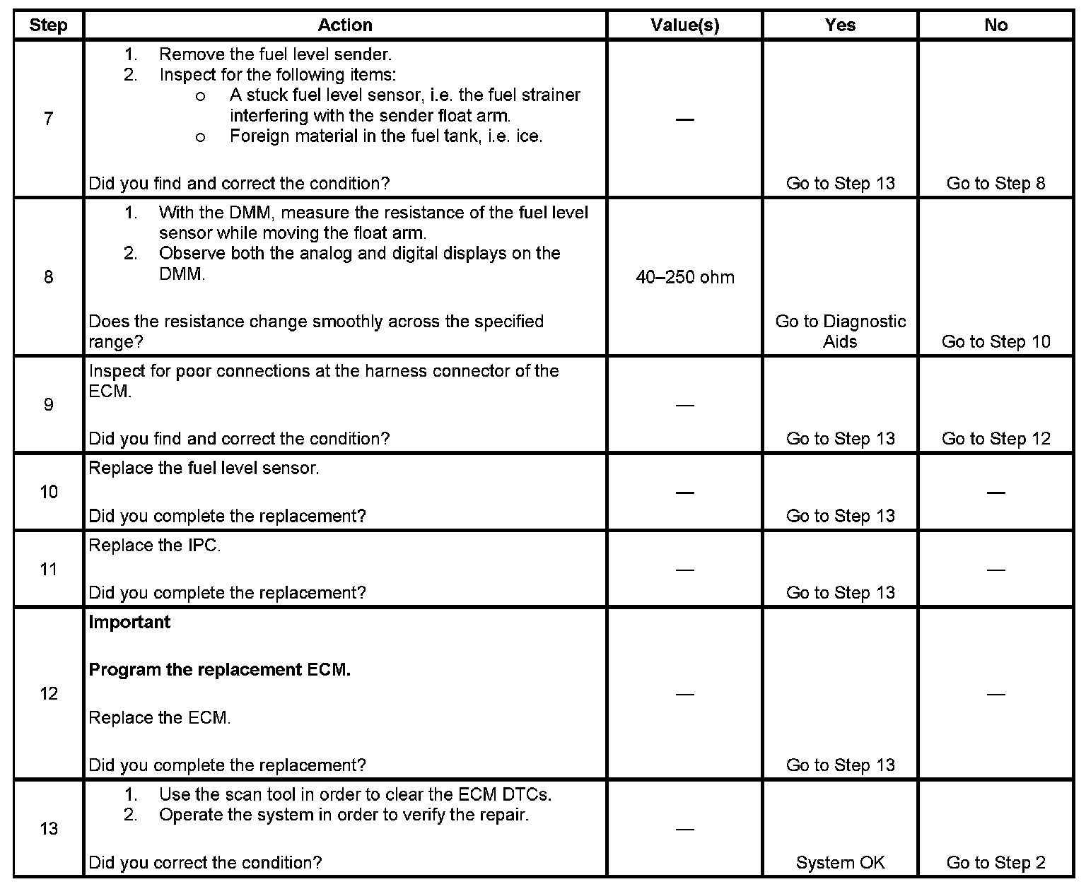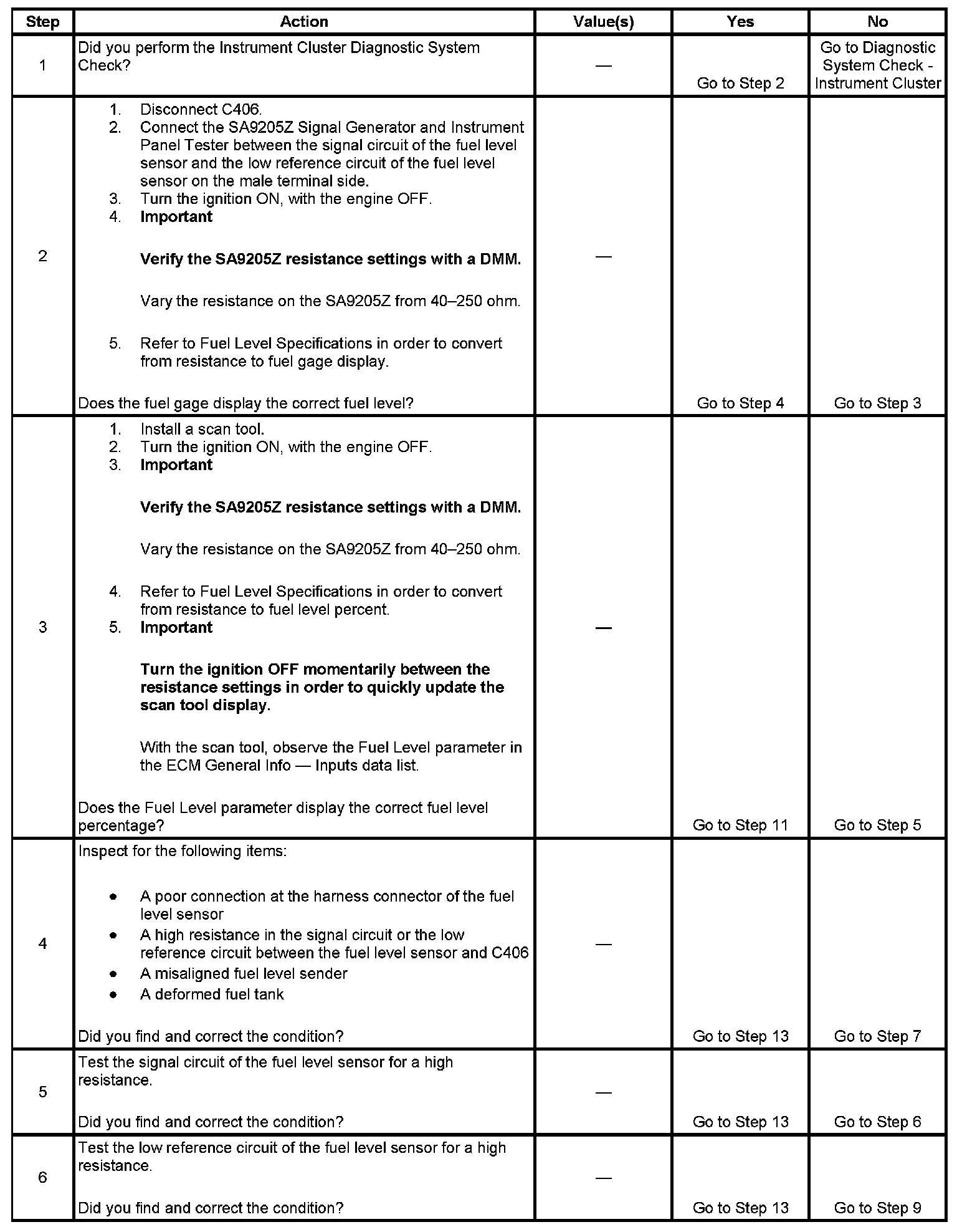 3. This step tests for a high resistance in the signal circuit and the low reference circuit of the fuel level sensor.