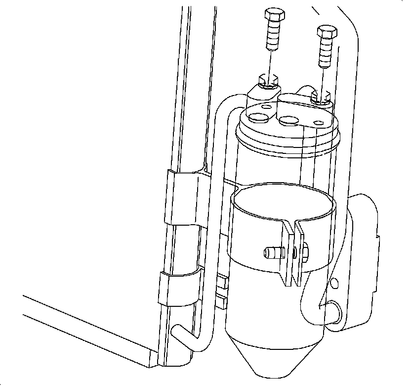 3. Loosen the receiver dehydrator clamp bolt and remove receiver dehydrator.