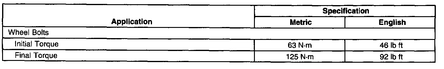 Torque Specifications: