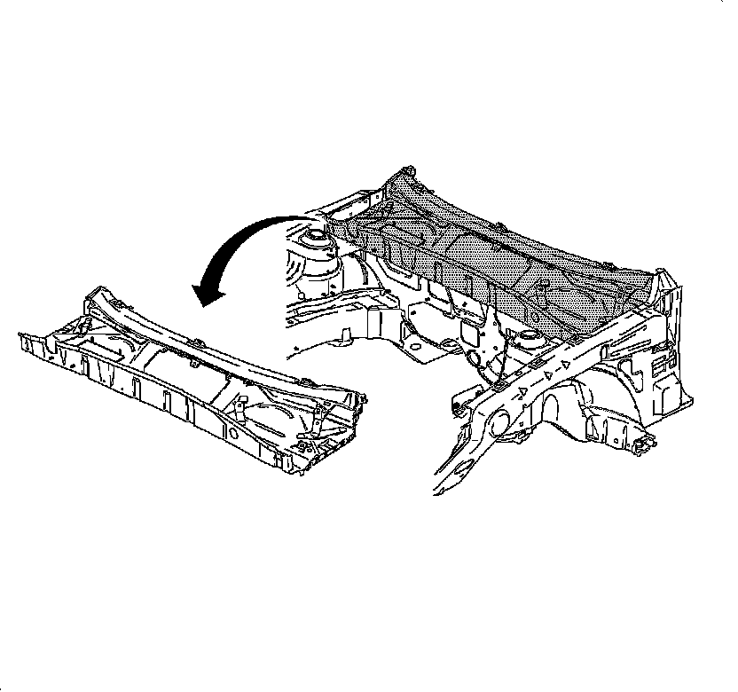 4. Remove the windshield. Refer to Windshield Replacement (Service and Repair) in Stationary Windows.