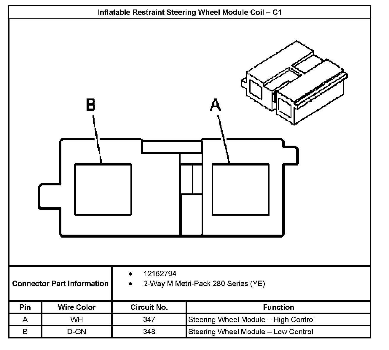 Inflatable Restraint Steering Wheel Module Coil - C1: