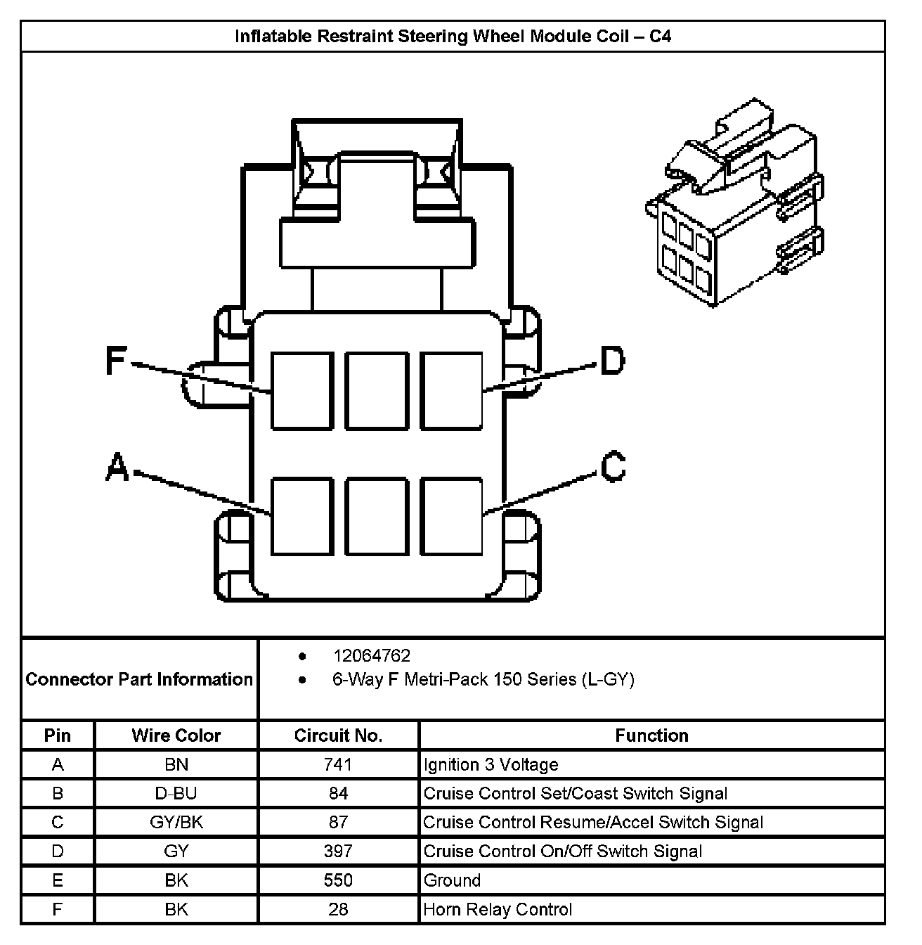 Inflatable Restraint Steering Wheel Module Coil - C4: