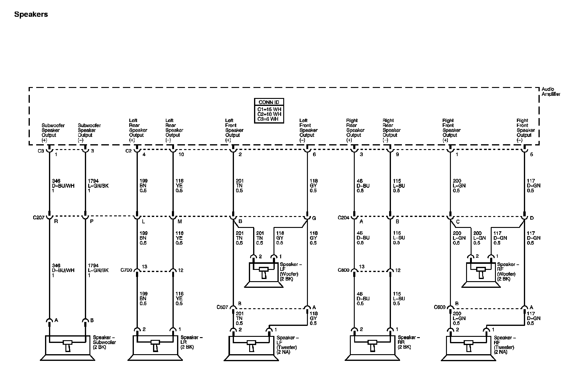 Location: The locations for the Connectors, Grounds, Splices, and grommets shown within these diagrams can be found via their numbers at vehicle locations. Locations