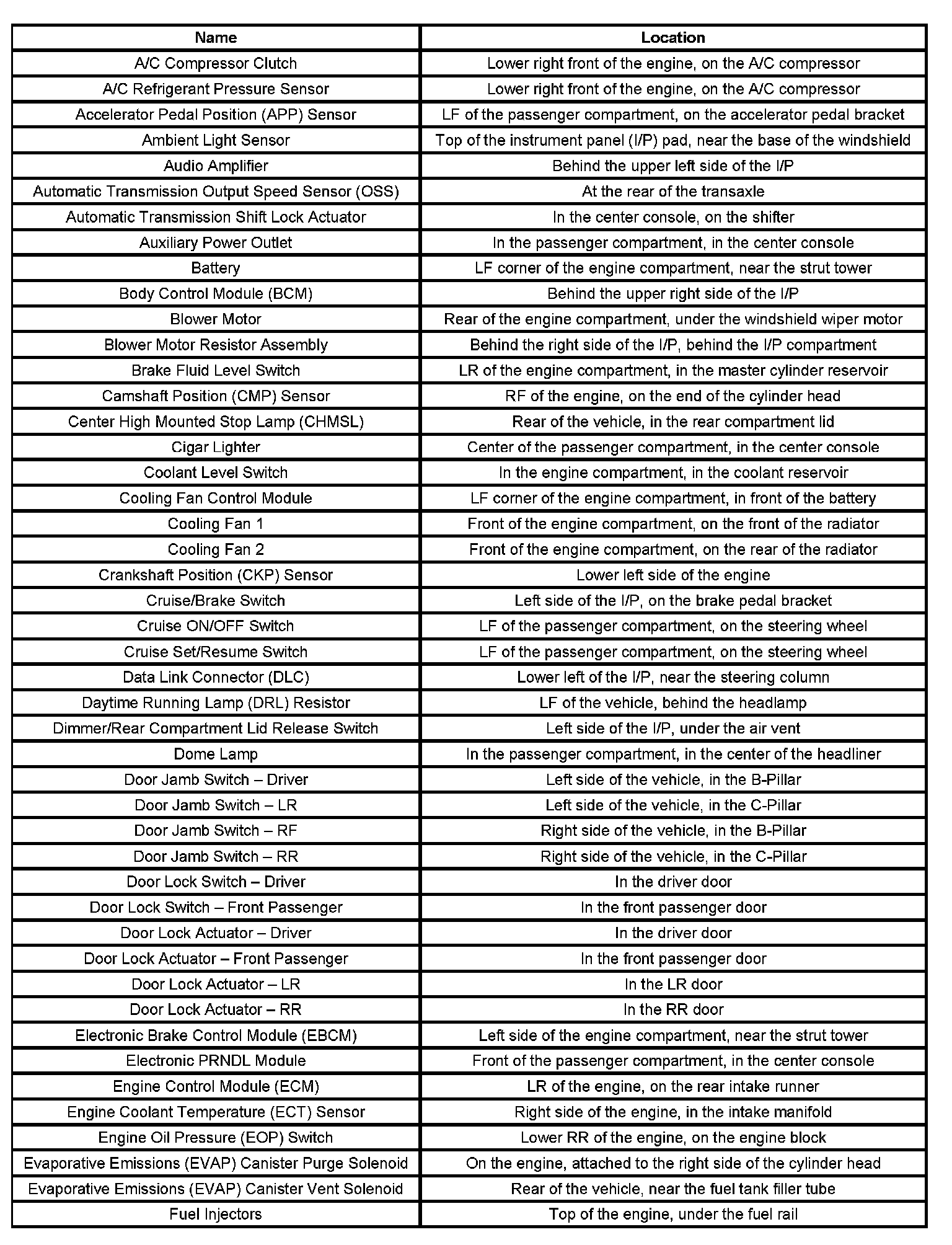 Component Locations