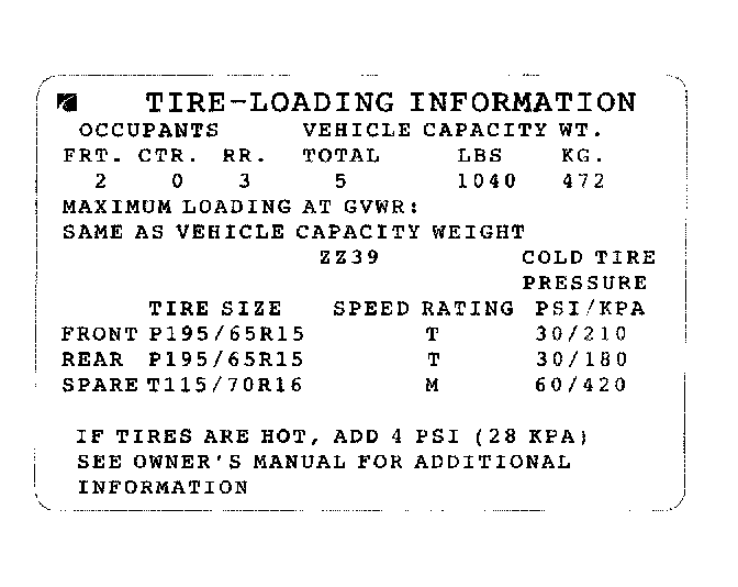 ^ Correct tire pressures
