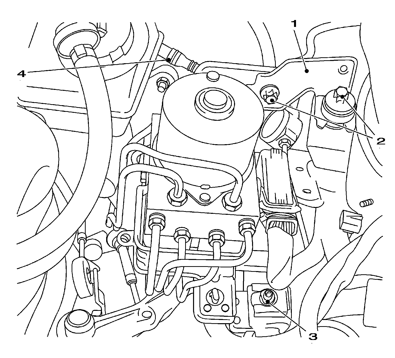 4. Remove the feed line (4) for the clutch master cylinder from the brake fluid reservoir.