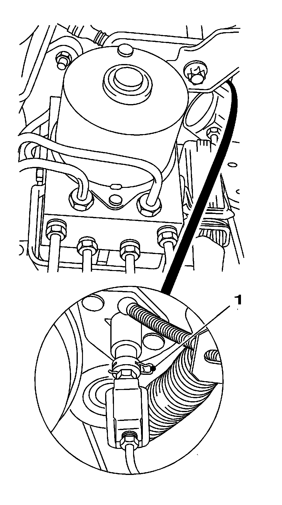 5. Remove the retaining clamp (1) on the clutch master cylinder.