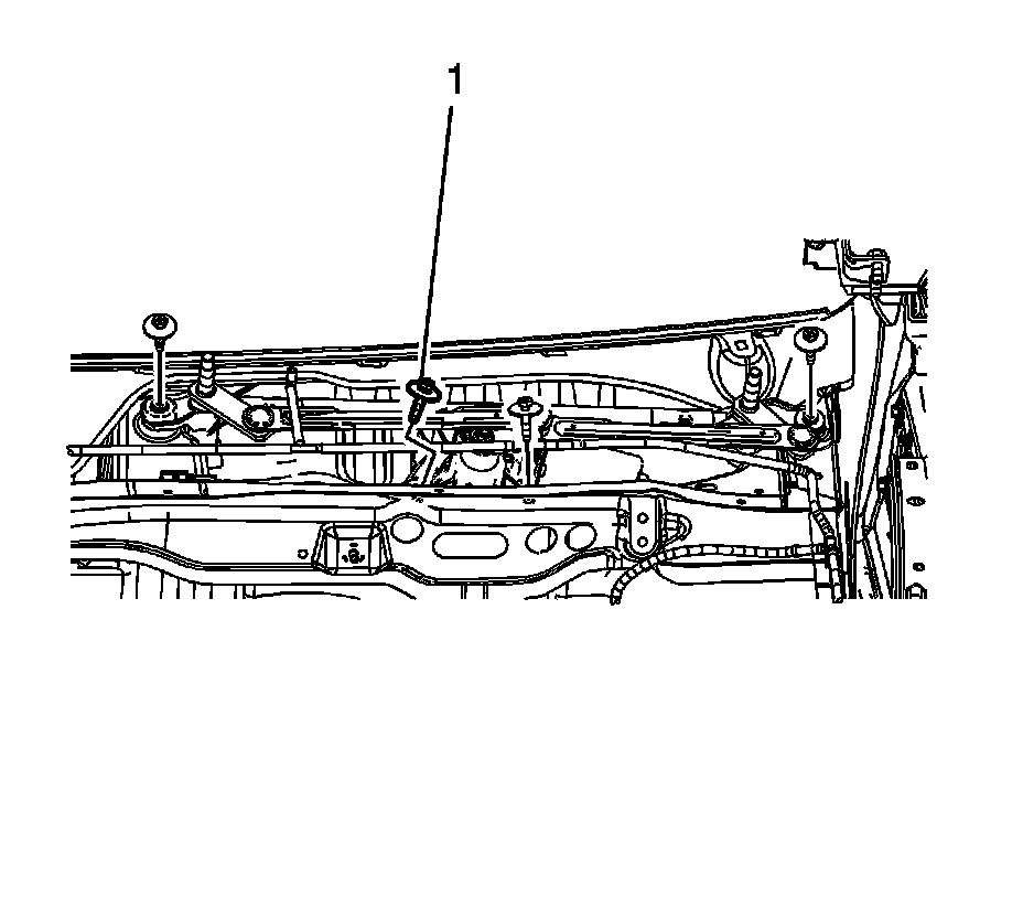 2. Remove the bolts (1) securing the windshield wiper transmission to the vehicle.