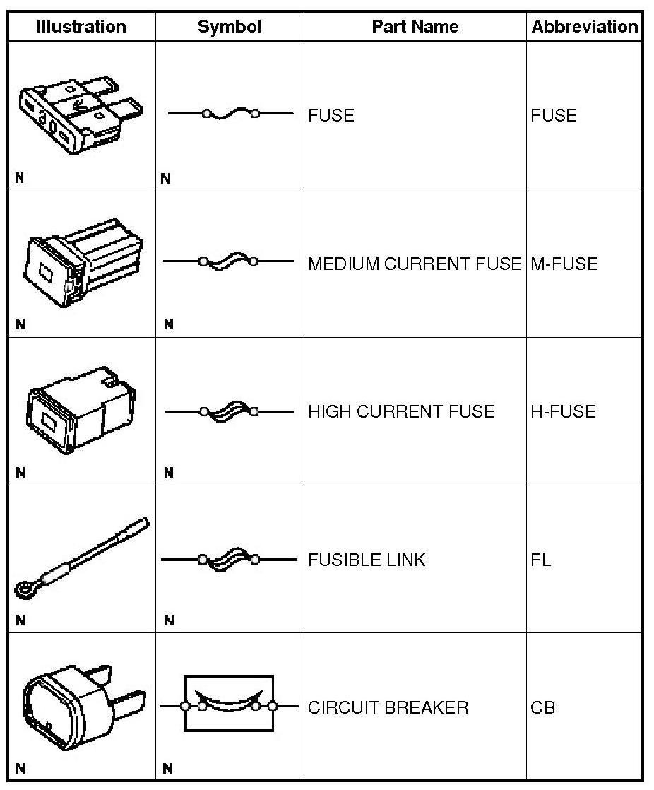 (2) If the wire of a fuse is broken, confirm that there are no shorts in its circuit.