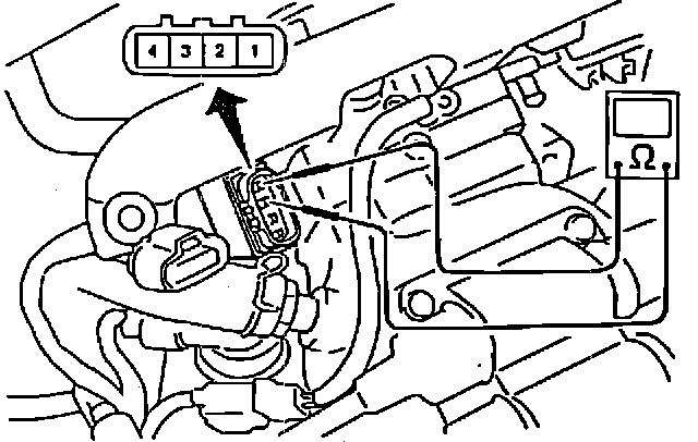 1. Connect a continuity meter between terminals 1 and 2 of the throttle sensor as shown.