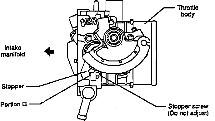 4. Insert 0.028 in (0.7 mm) feeler gauge between stopper screw and stopper (portion G).