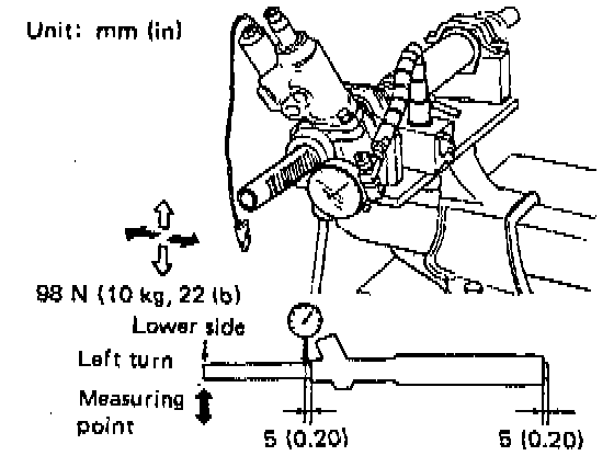 Make a measurement as follows. if it exceeds the specified service limit, adjust or replace. When making a measurement, vise gearbox by using special tool (STAND; 926200000). Never vise gearbox by inserting aluminum plates, etc. between vise and gearbox. Sliding resistance of rack shaft.