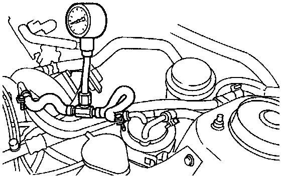 b. Connect fuel pressure gauge between fuel filter and hose, and measure fuel pressure at idling.