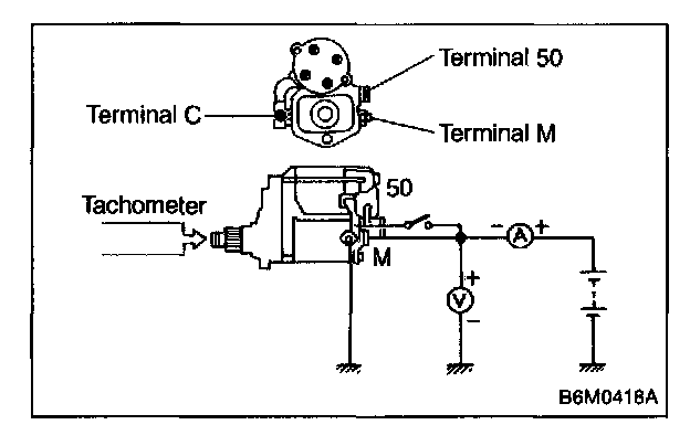 The starter is required to produce a large torque and high rotating speed, but these starter characteristics vary with the capacity of the battery. It is therefore important to use a battery with the specified capacity whenever testing the starter.