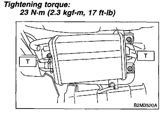 Loosen two clamps which hold two canister hoses, and disconnect evaporation three hoses from canister.