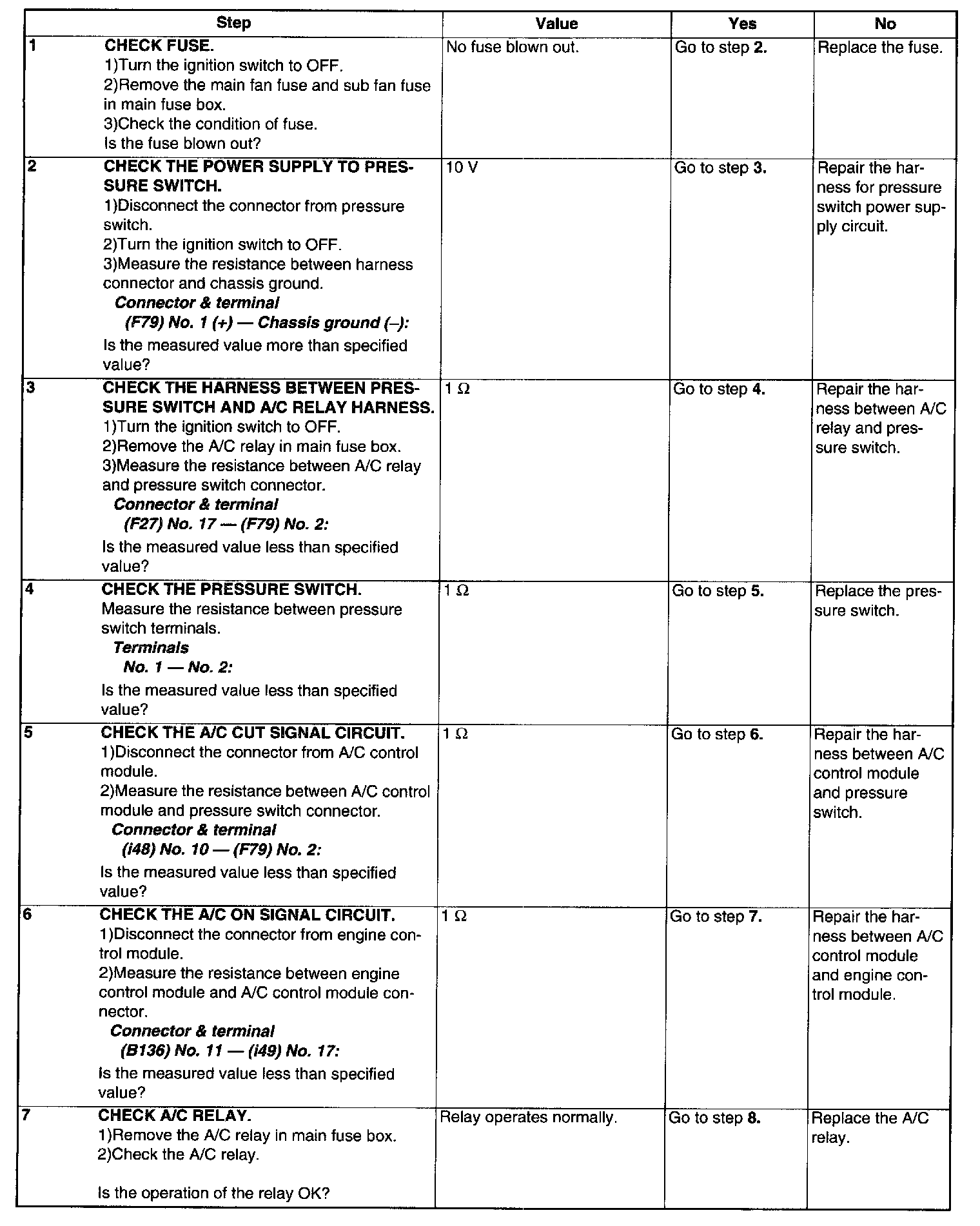 COMPARTMENT TEMPERATURE IS NOT CHANGED OR A/C SYSTEM DOES NOT RESPOND QUICKLYTROUBLE SYMPTOM: