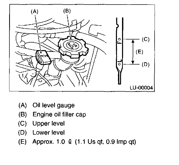 NOTE: To prevent overfilling the engine oil, do not add oil above the "F" line when the engine is cold.