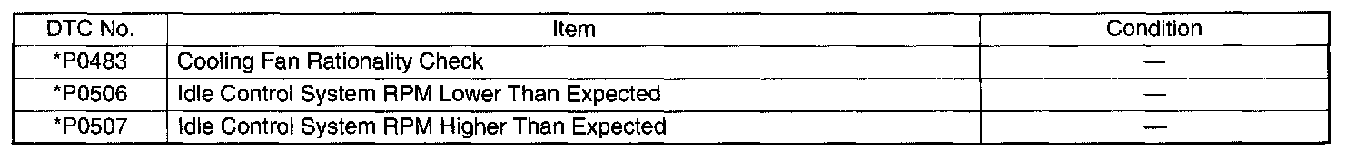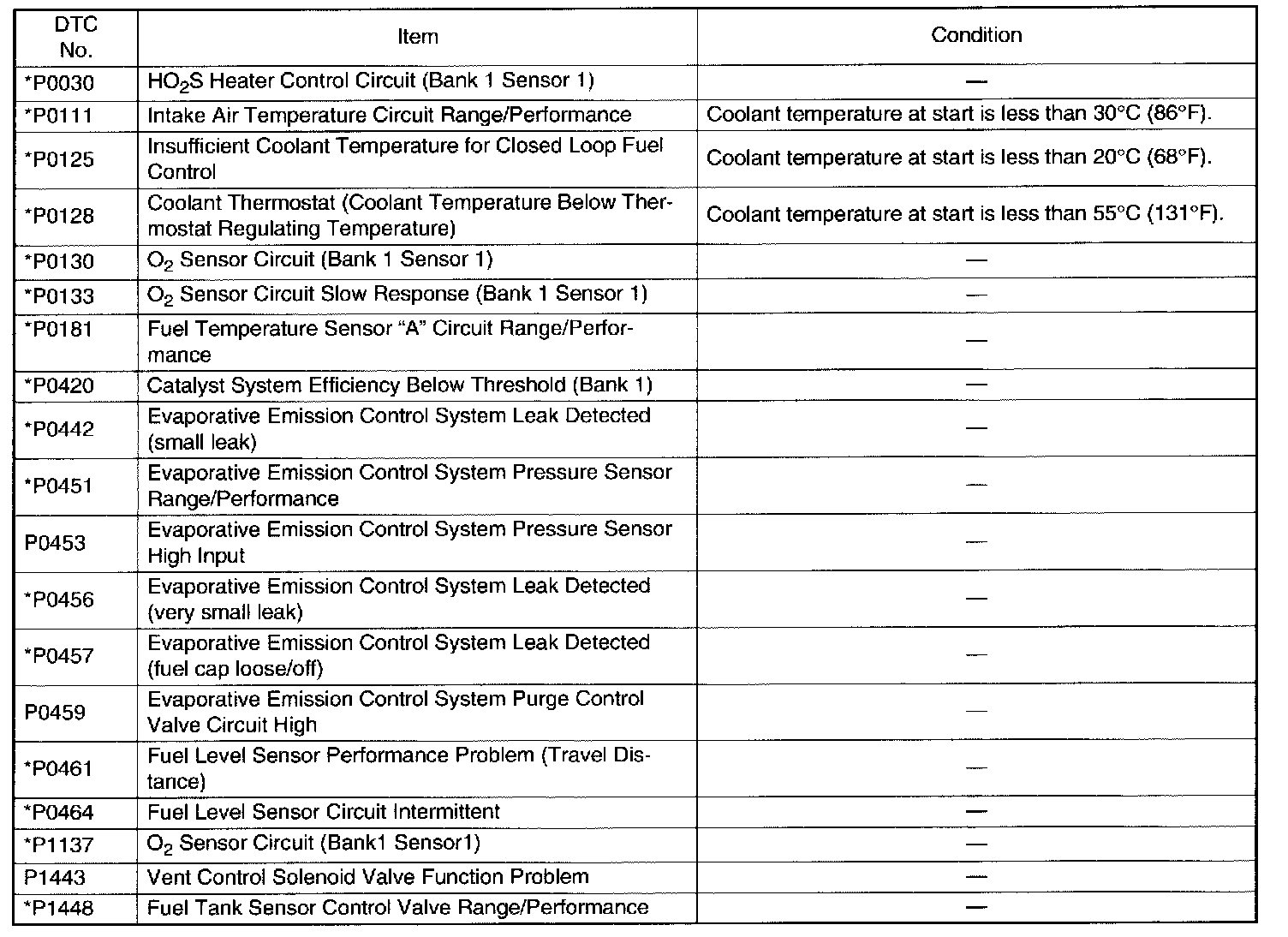 - Carry out the diagnosis which is marked * on DTC twice, then, after finishing first diagnosis, stop the engine and do second time at the same condition.